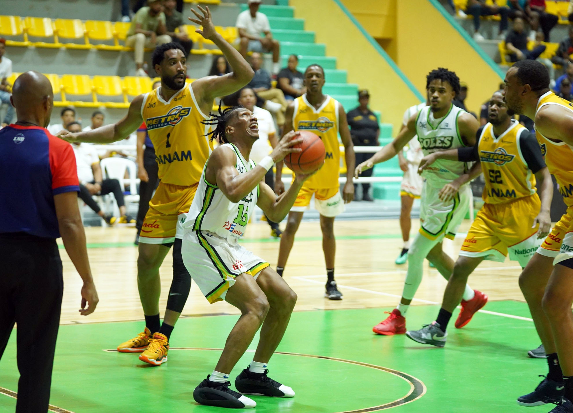 Los parciales entre Soles y Meteos terminaron 17-13 y 22-29 en los dos primeros períodos, para irse al descanso de medio tiempo los cibaeños arriba de tres puntos, 39-42.