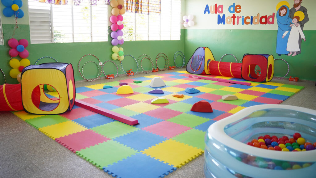 Vista del Aula de Psicomotricidad inaugurada por el Instituto Nacional de Educación Física (INEFI) en el Centro Educativo Hogar Escuela Nuevos Horizontes, del municipio Duvergé, de la provincia Independencia.