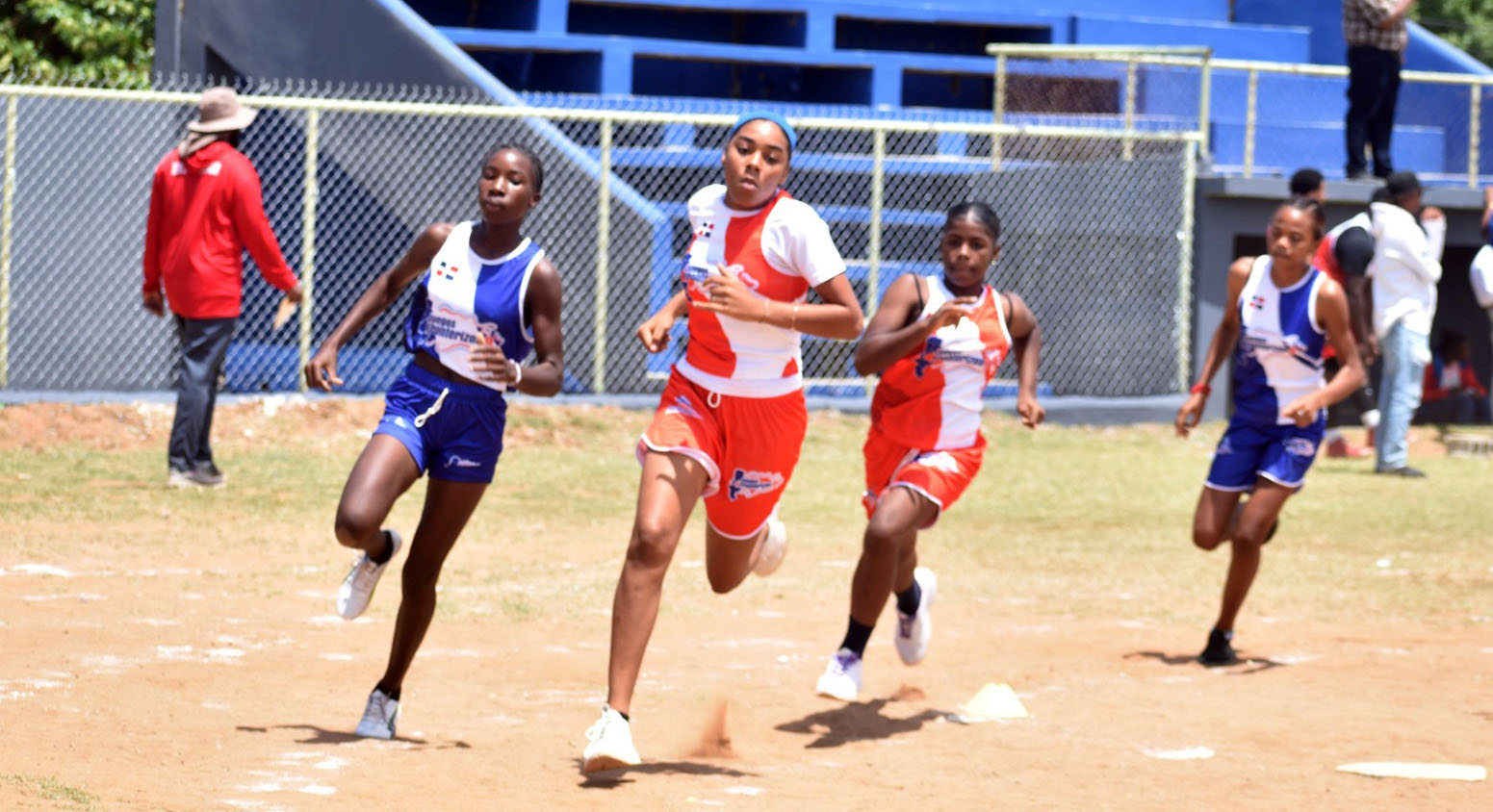Merlina Everts, de la provincia Independencia, ganó los 100 metros con tiempo de 13.47 y la plata fue ganada por Neydis Pérez, de Dajabón, con 14.04. Rafaelina Rodríguez (Dajabón) completó el podio con 14.05.