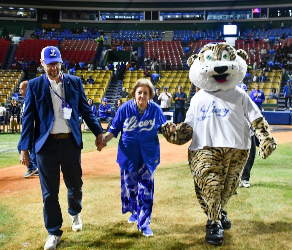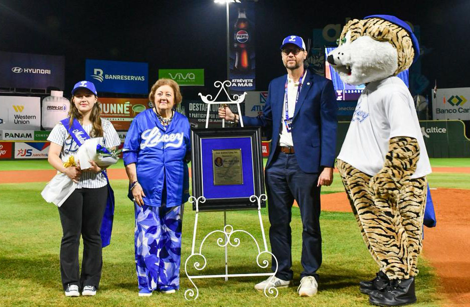 Doña Matilde Dargam recibió una placa de reconocimiento de la mano del presidente Miguel Guerra Armenteros y fue homenajeada con un video tributo en la pantalla del jardín central. Además, fue la encargada del lanzamiento ceremonial de la primera bola con su sobrino Cornelio Peña como su receptor de honor.