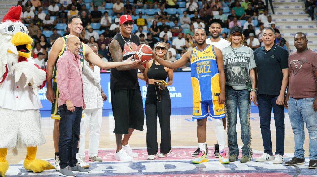 El jugador de la NBA y de origen dominicano, Charlie Villanueva, realizó el saque de honor previo a inicio del tercer período del cuarto partido de la serie final, invitado por la Asociación de Baloncesto del Distrito Nacional (Abadina).