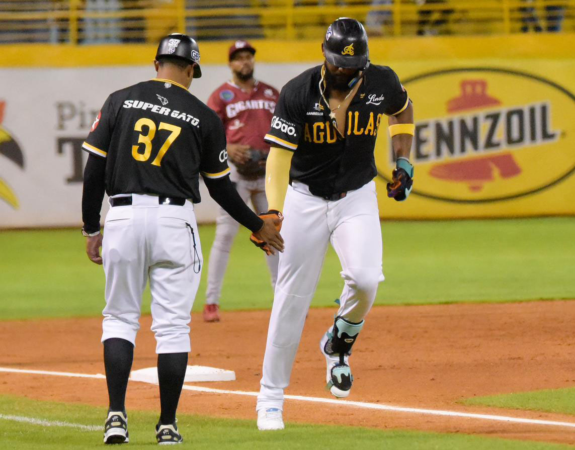 Las Águilas comenzaron atacando con fuerza, cuando en la misma primera entrada Ezequiel Durán conectó doble y Aderlin Rodríguez depositó la bola en el bleacher de la izquierda para jonrón de 2 carreras.