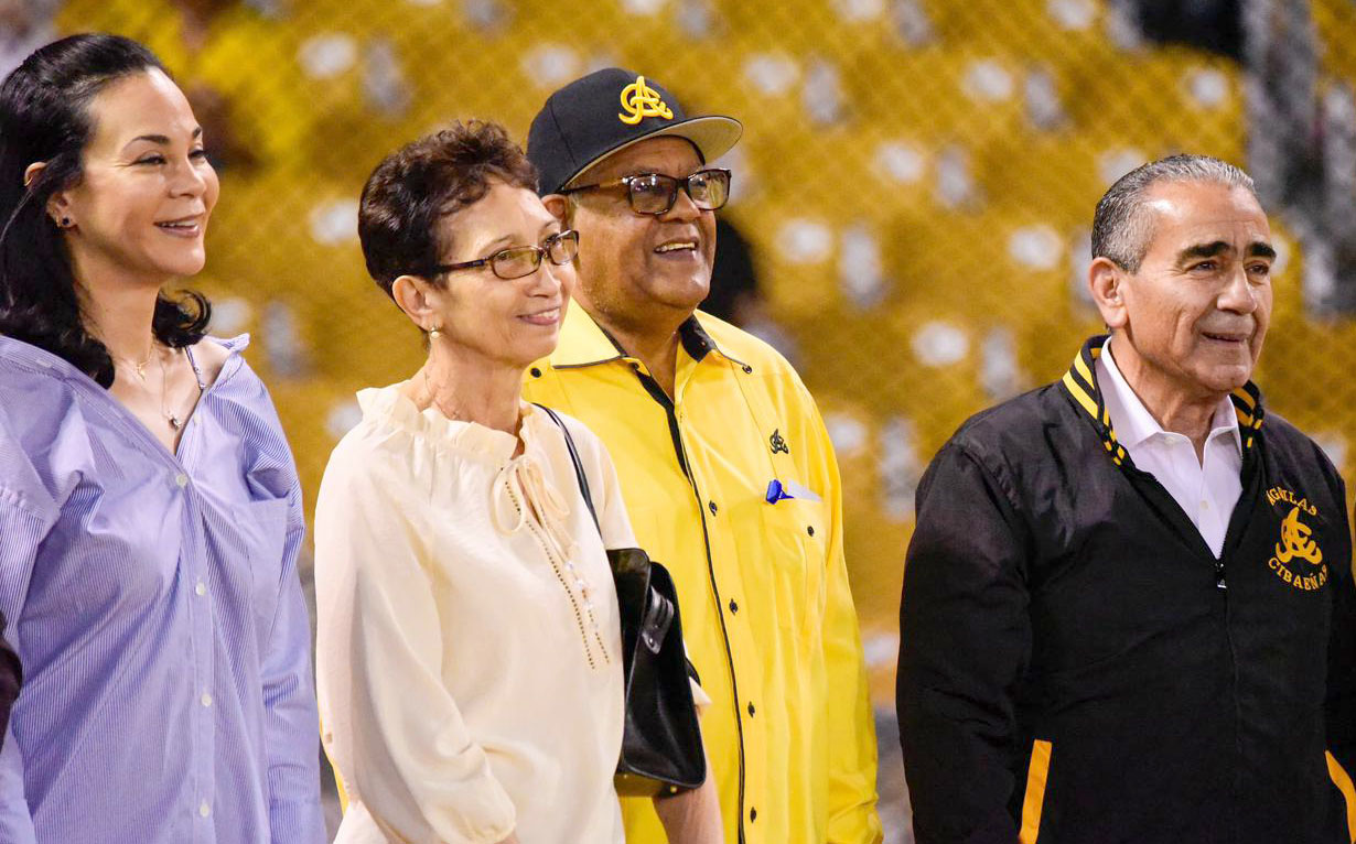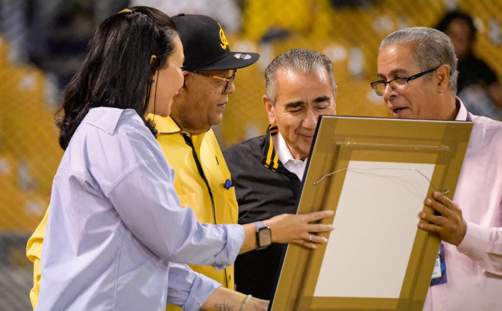 Pérez recibió una placa de reconocimiento de manos de Víctor García Sued, presidente del Consejo Directivo de los 22 veces campeones nacionales y seis veces monarcas caribeños, junto a Américo Cabrera, presidente de la ACDS.