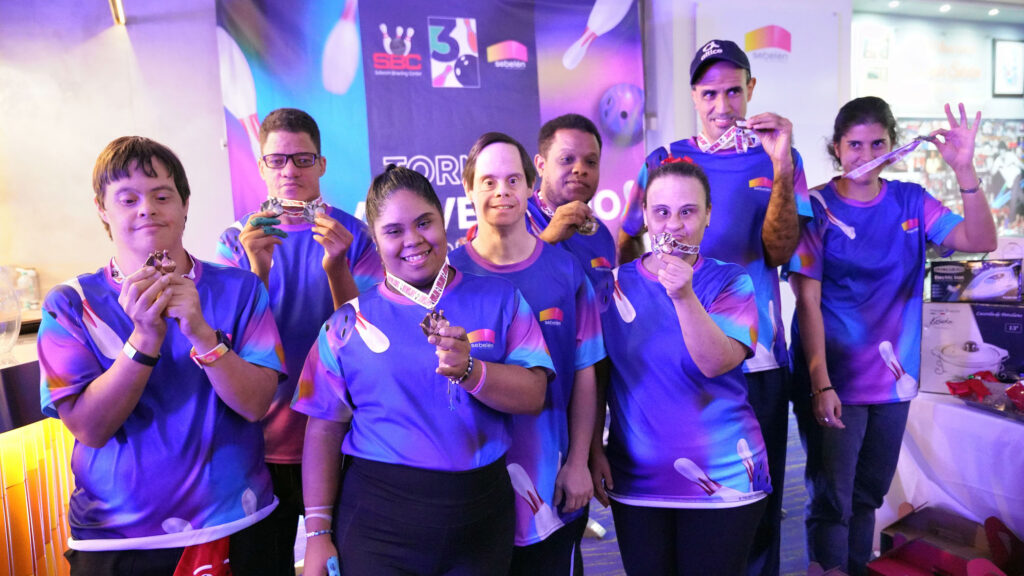 SANTO DOMINGO. Los atletas especiales disfrutaron y mostraron sus habilidades deportivas al participar en el torneo de boliche en la celebración  del 30 aniversario del Sebelén Bowling Center, el escenario deportivo que es su hogar en el deporte por  el apoyo que le brindan los ejecutivos.