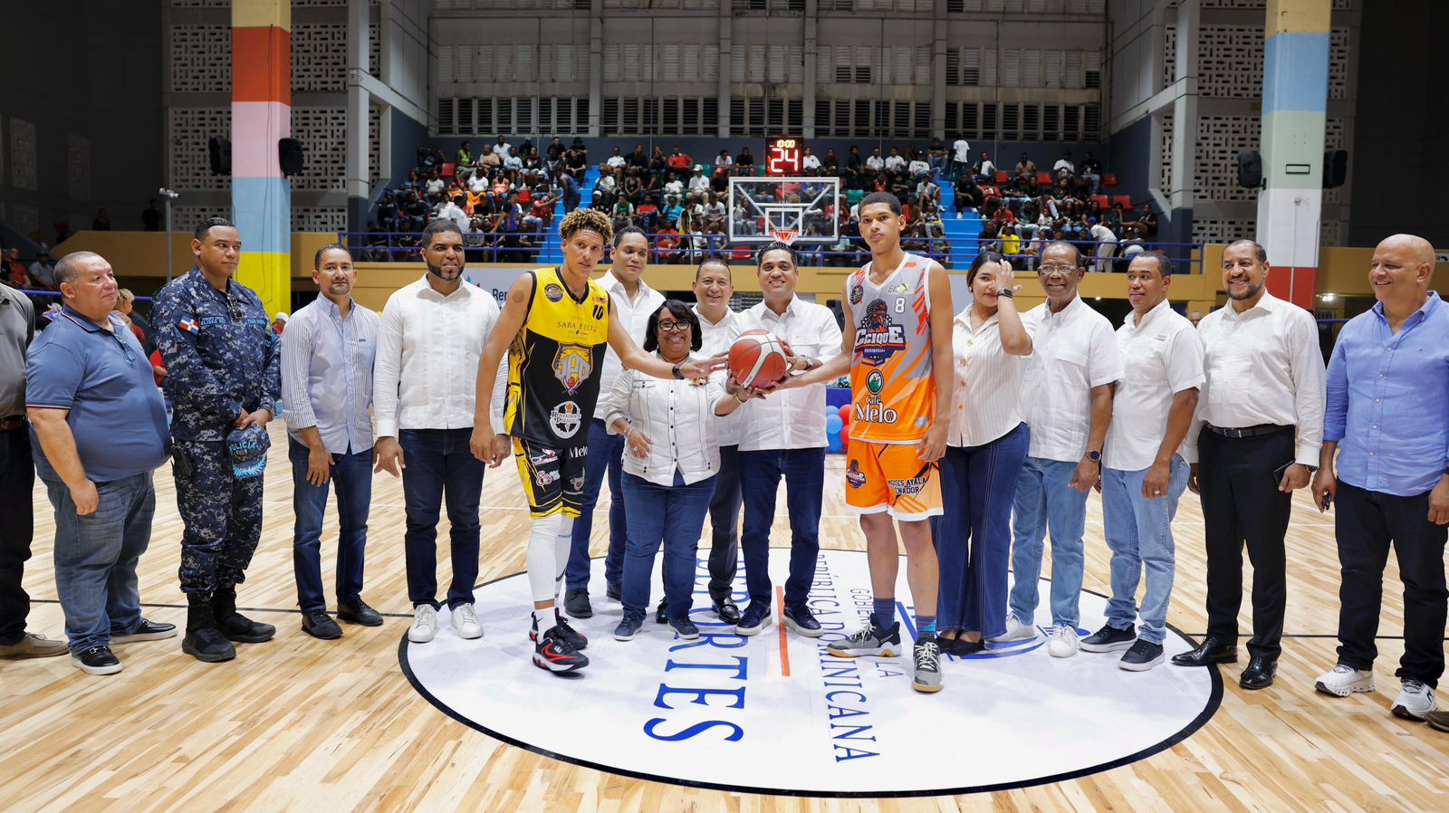Barahona. = El ministro de Deportes, Kelvin Cruz, entregó este viernes el remozado polideportivo del municipio cabecera de esta provincia con una inversión de 14 millones de pesos al tiempo que anunció un aporte de un millón de pesos para el Torneo de Baloncesto Superior durante la ceremonia de inauguración del certamen.