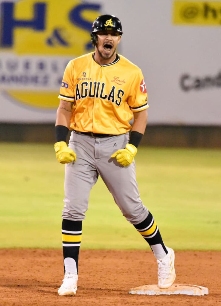 Las águilas se fueron arriba en el séptimo episodio después de un out, Elih Marrero ligó metrallazo al central. Steward Berroa negoció boleto avanzado los corredores por lanzamiento descontrolado, Leody Taveras remolcó dos carreras con imparable por el campocorto.