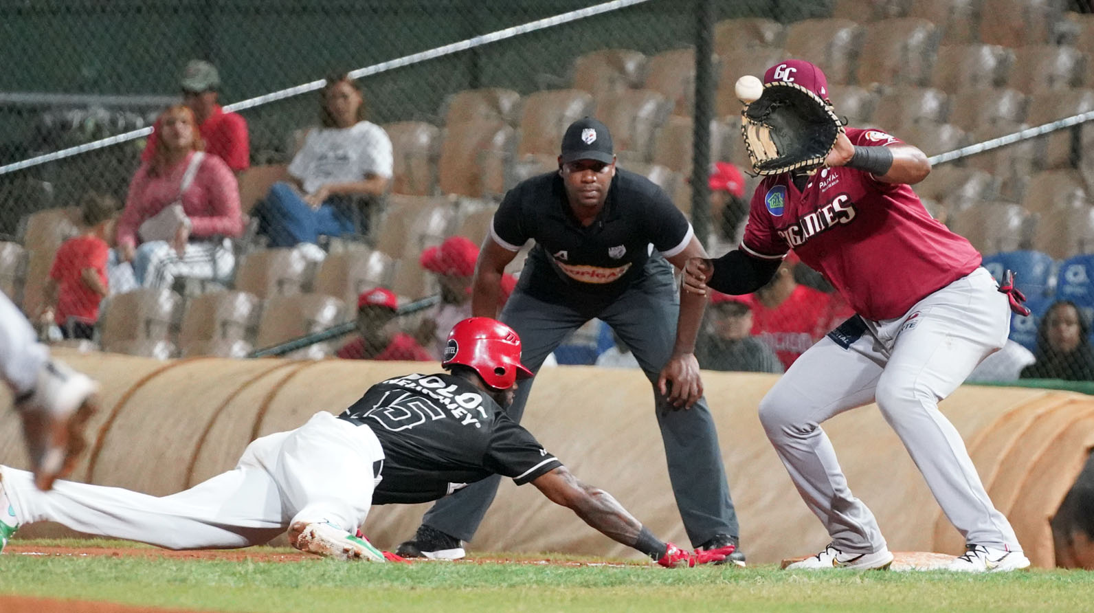 En el quinto capítulo, ante Kenny Hernández con las bases llenas y dos outs, Francisco Mejía conectó un rodado por segunda que obligó al intermedista Jorge Mateo a desplazarse a su derecha con el guante de revés para lograr un disparo de piconazo que retuvo el inicialista José Marmolejos para cerrar la entrada sin anotaciones.