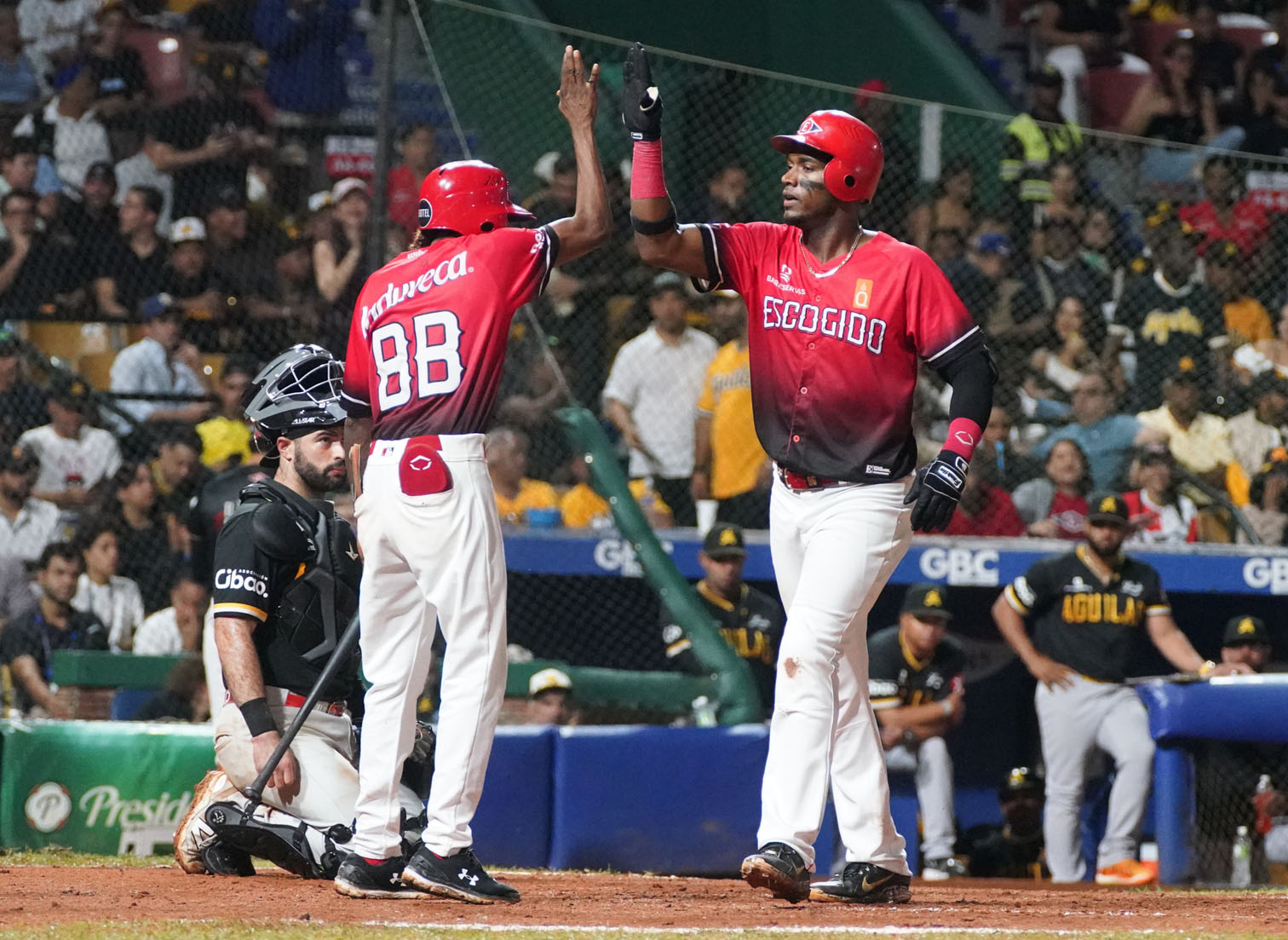 Por los capitaleños, Brito bateó de 5-3, con dos producidas, una anotada y dos bases robadas; Escobar, de 5-3, con tres anotadas; Lake, de 3-1, con cuadrangular, tres remolcadas y una anotada, y Marmolejos, de 4-1, dos anotadas y una empujada.