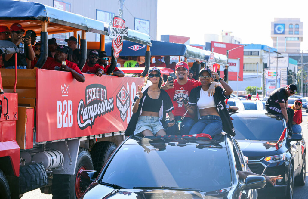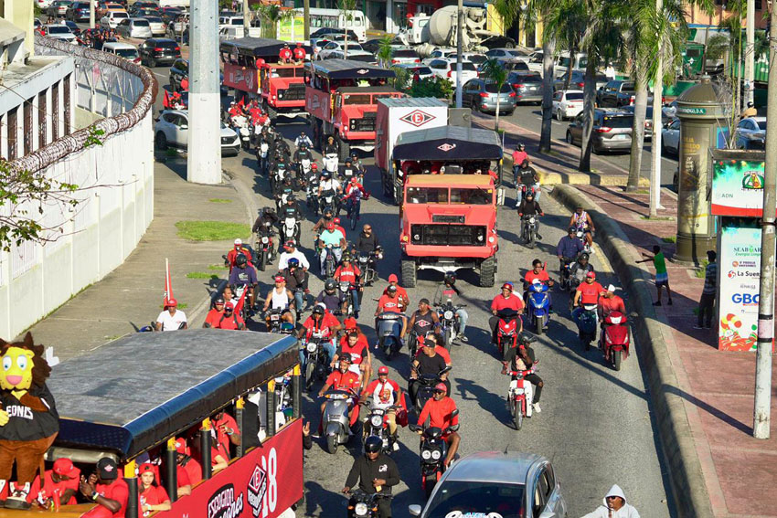 SANTO DOMINGO.- Con un recorrido por varias de las principales calles y avenidas de la capital dominicana, los Leones del Escogido celebraron su corona número 18 junto a miles de fanáticos que se sumaron en el trayecto a la caravana triunfal escarlata.