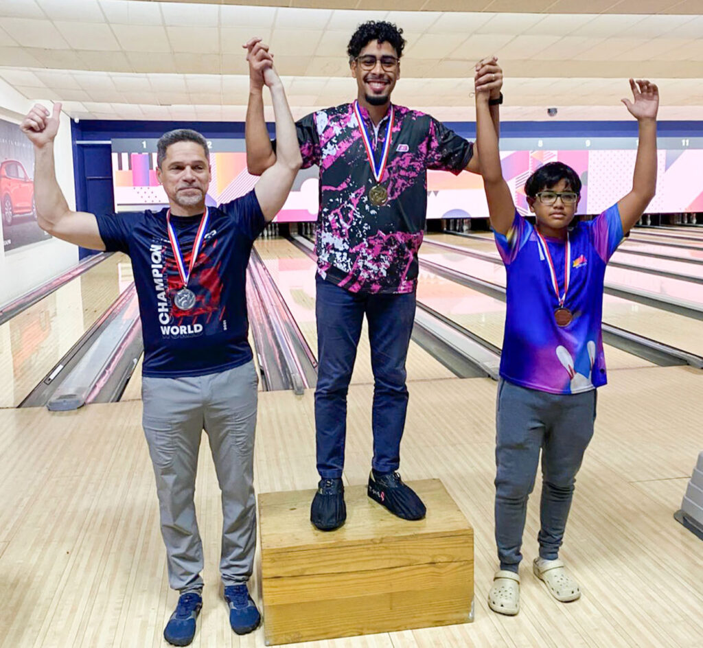 Héctor Rodríguez se adjudicó la plata con 2,415 pines derribados y Hamlet Flores logró el bronce con 2,401 pines en los 12 juegos.