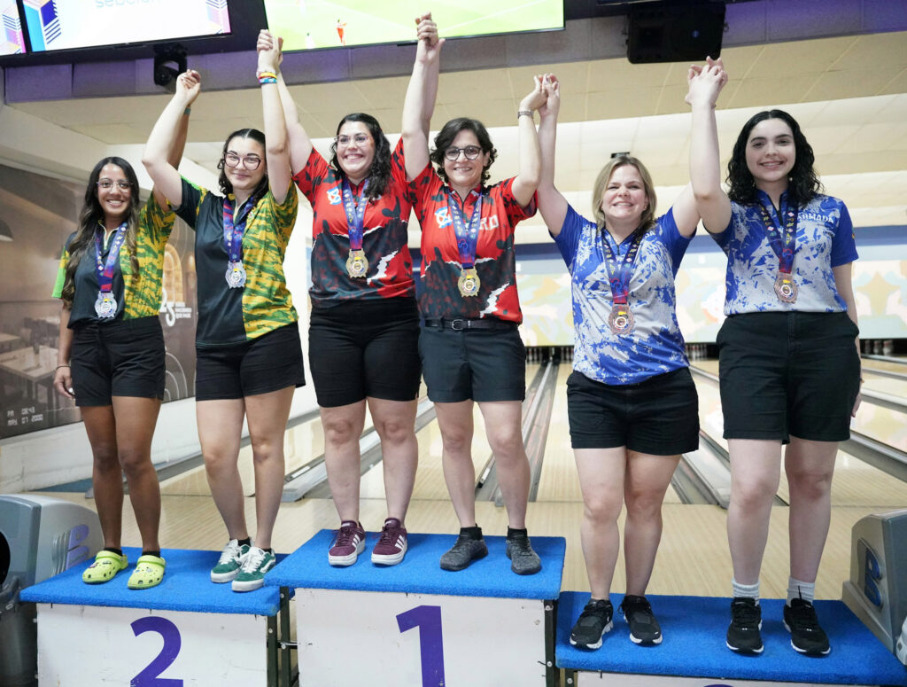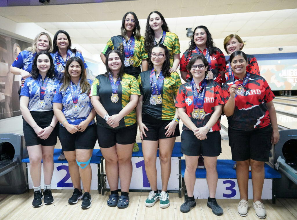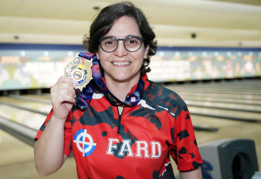 La capitán Aumi Guerra, FARD. Se llevó la medalla de oro de las fémina al dominar con un total de 1.098 puntos y un promedio de 219.6. La plata fue para Rosalia Guzmán, ERD con 1,050 y un promedio de 211.6. El bronce fue para Virginia Bello, ARD, quien facturó 1,046 puntos para un promedio de 209.2.