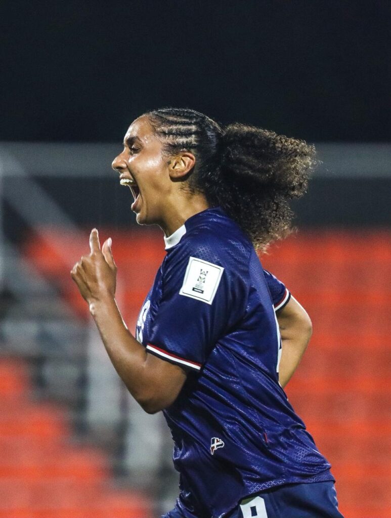 Gabriella Cuevas añadió el tercero para las dominicanas en el 23’, con un cabezazo al segundo poste, capitalizando un centro de Winibian Peralta.