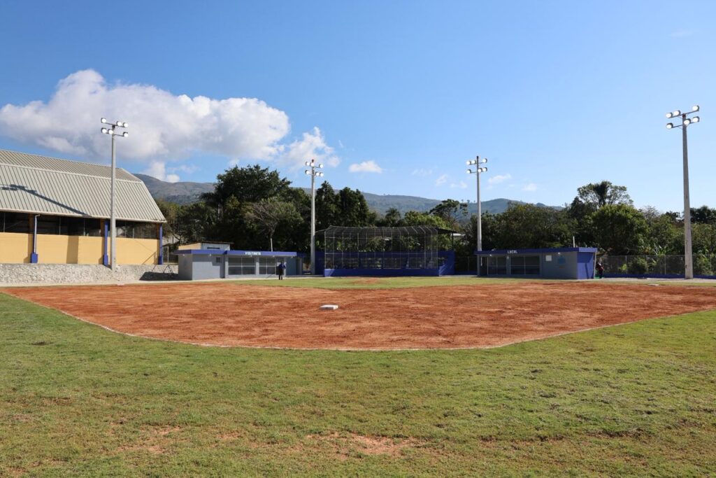 La intervención contempló, además, la construcción de infraestructuras fundamentales del estadio, como el backstop, nuevas gradas, dugouts, baños mixtos y una caseta eléctrica, así como muros de cierre perimetral para mayor seguridad.